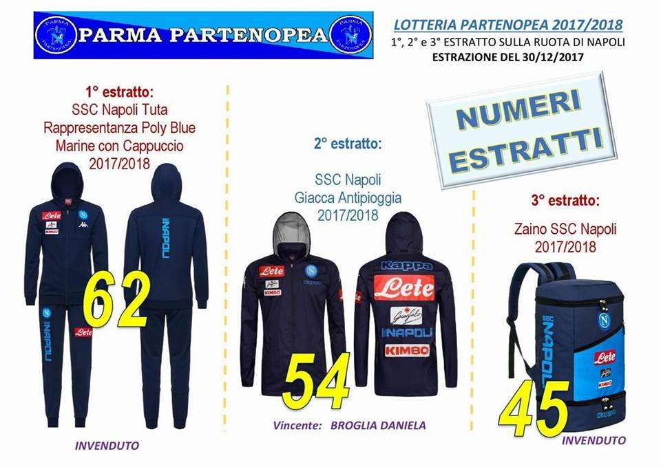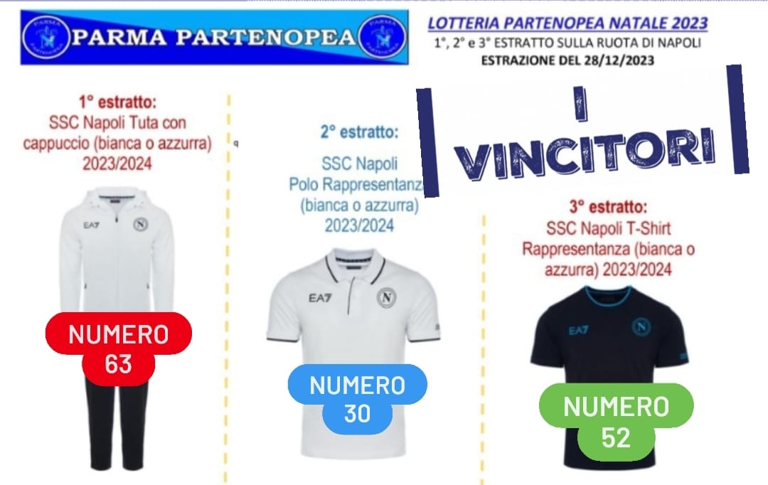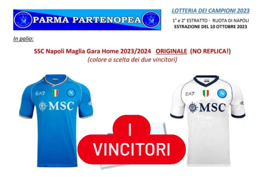 Parma Partenopea: 9° Lotteria Partenopea i VINCITORI della Tuta,Polo e T-Shirt Ufficiale Originale EA7 SSC Napoli 2024/2025