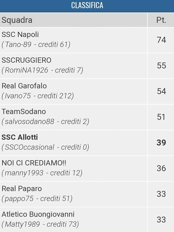 Il Presidente ringrazia tutti i Soci che hanno partecipato a questo 4° FantaCalcio Targato Parma Partenopea,dove è stato bello sfottersi dopo ogni partita,in special modo nel gruppo WApp…tra resoconti amacord…canzoni neomeodiche inventate al momento per una vittoria/sconfitta…