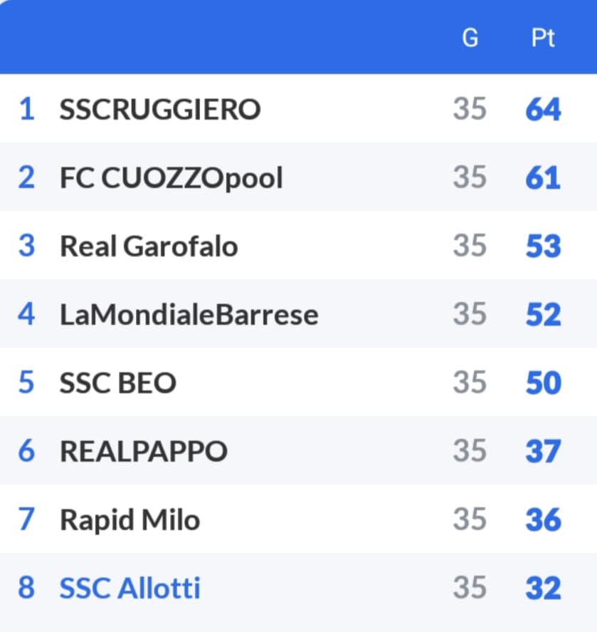 Anche il Finale di Campionato con il vincitore decretato alla fine…dove il 1° Classificato per 3 punti si è distanziato dal 2° Posto.